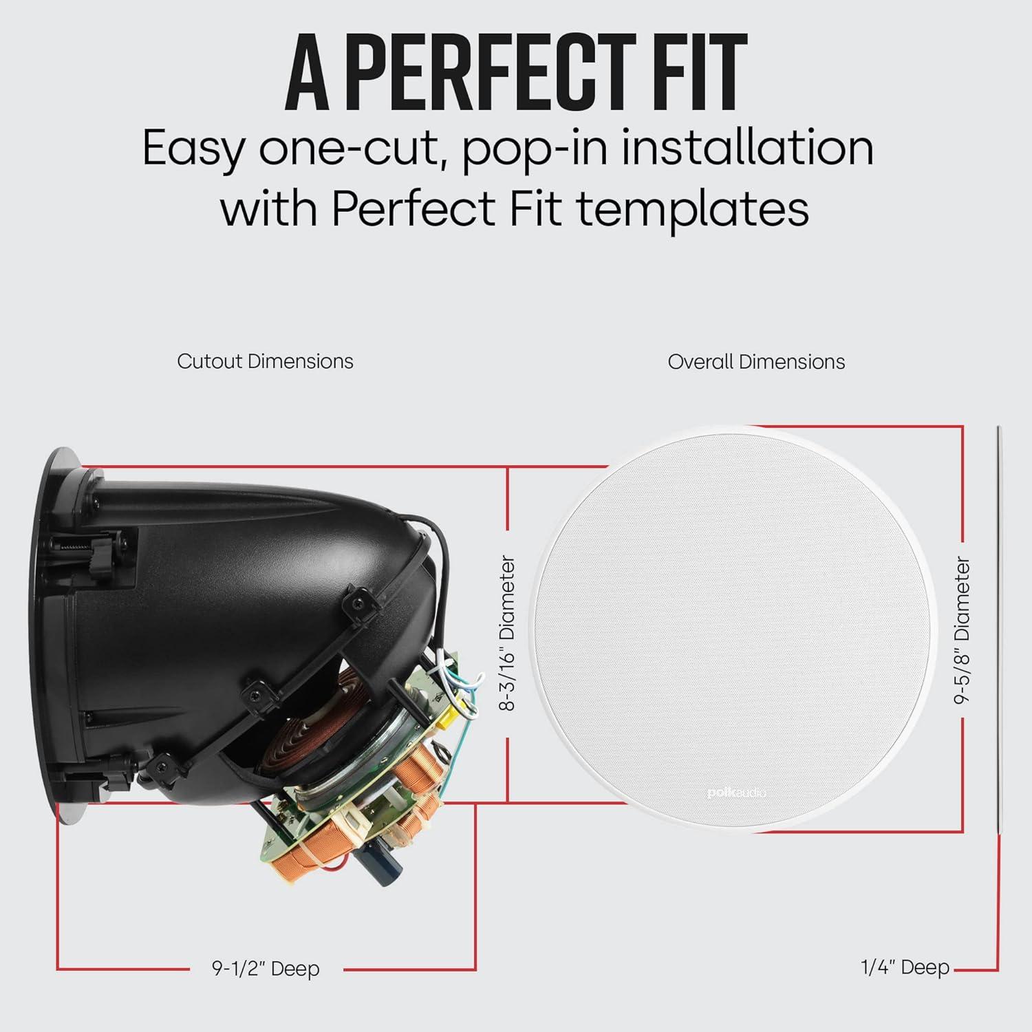 Polk Audio 90-RT 3-Way In-Ceiling Speaker – The Vanishing Series | Perfect for Mains, Rear or Side Surrounds | Paintable Wafer-Thin Sheer Grille | Dual Band-Pass Bass Ports for Low Frequencies