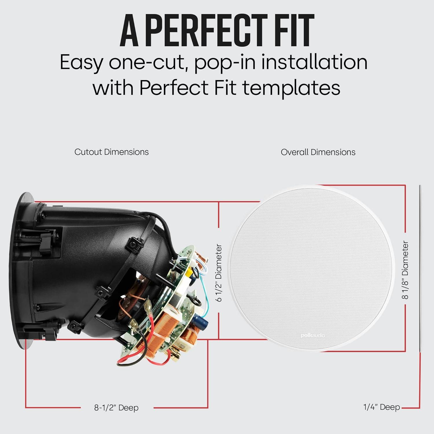 Polk Audio 70-RT 3-Way In-Ceiling Speaker (2.5” Driver, 7” Sub) – The Vanishing Series | Power Port | Paintable Grille | Dual Band-Pass Bass Ports White