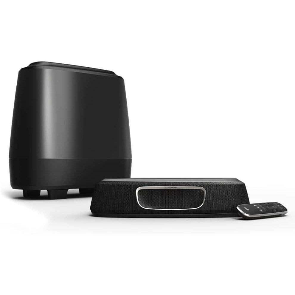 The MagniFi Mini delivers the big, room-filling home theater experience you’d expect from a full-size sound bar in an ultra-compact design. Compatible with most TVs, it’s easy to set up and features Polk’s Voice Adjust and SDA surround sound technologies with 5.1 Dolby Digital decoding, ensuring crystal clear dialogue and immersive surround sound—plus an included wireless subwoofer for deep bass impact you can feel. Convenient to use as it works with any TV, cable box or satellite IR remote control—no need for two remotes. Stream your favorite music through Bluetooth, and Google Home Chromecast for Audio. The one-button Night Mode lowers the bass and increases Voice Adjust delivering clear dialogue all without raising the master volume.