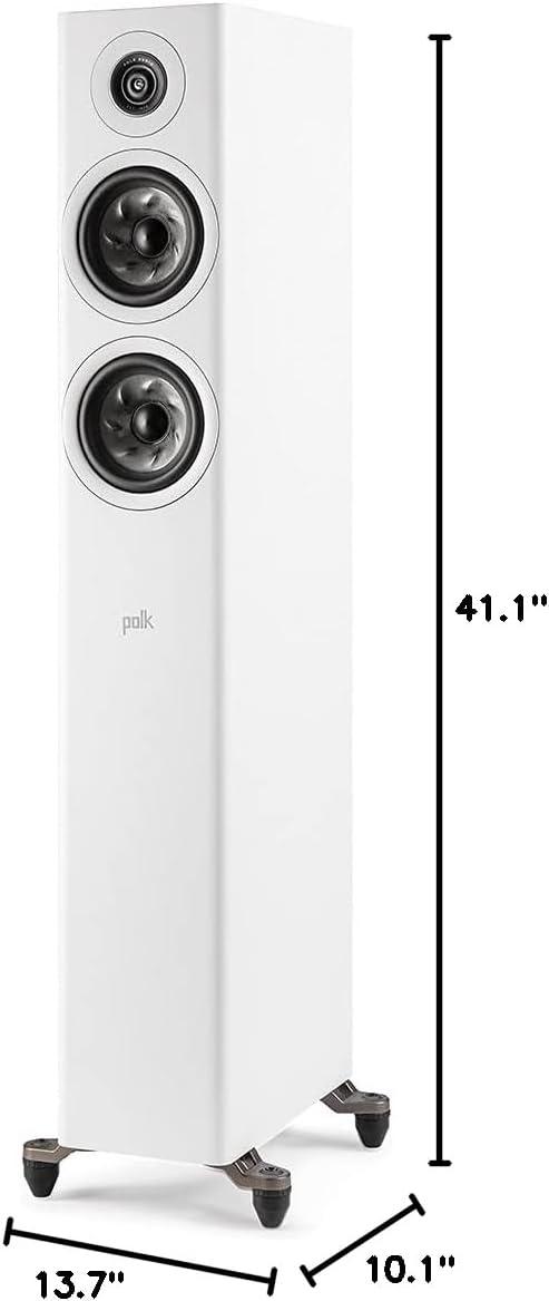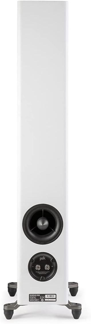 Polk Reserve R500 Compact Floorstanding Speaker for Unmatchable Audio Performance. The Polk Reserve R500 Floorstanding Speaker is a high-performance tower loud speaker that delivers ultra-clear and crisp highs, detailed midrange, and effortless bass. It features a 1″ Pinnacle Ring Radiator Tweeter and dual 5.25″ Turbine Cone Woofers with Hi-Res Audio Certification, Dolby Atmos, and IMAX Enhanced support to produce high-quality sound with pure detail. Whether you're listening to music, watching movies, or playing video games, the R500's bass reflex cabinet with a rear-firing port and Polk's Patented X-Port Technology with Eigentone Filter (ETF) ensures tight, distortion-free bass for an immersive audio experience. The premium, large 5-way binding posts ensure an efficient setup with loss-less connection. This powerful speaker includes rubber feet for hardwood, vinyl, laminate, and tile floors, and spike feet for carpet floors. These adjustable feet allow speaker leveling according to your preference. Add another R500 tower speaker, two R100 bookshelf speakers, R300 center channel, and three R350s & add R900 height module for depth (all sold separately) to create a multichannel surround sound system. The R500 is compatible with the latest file formats like DSD, FLAC, WAV, ALAC, and MQA, so you can experience superior audio performance at home.