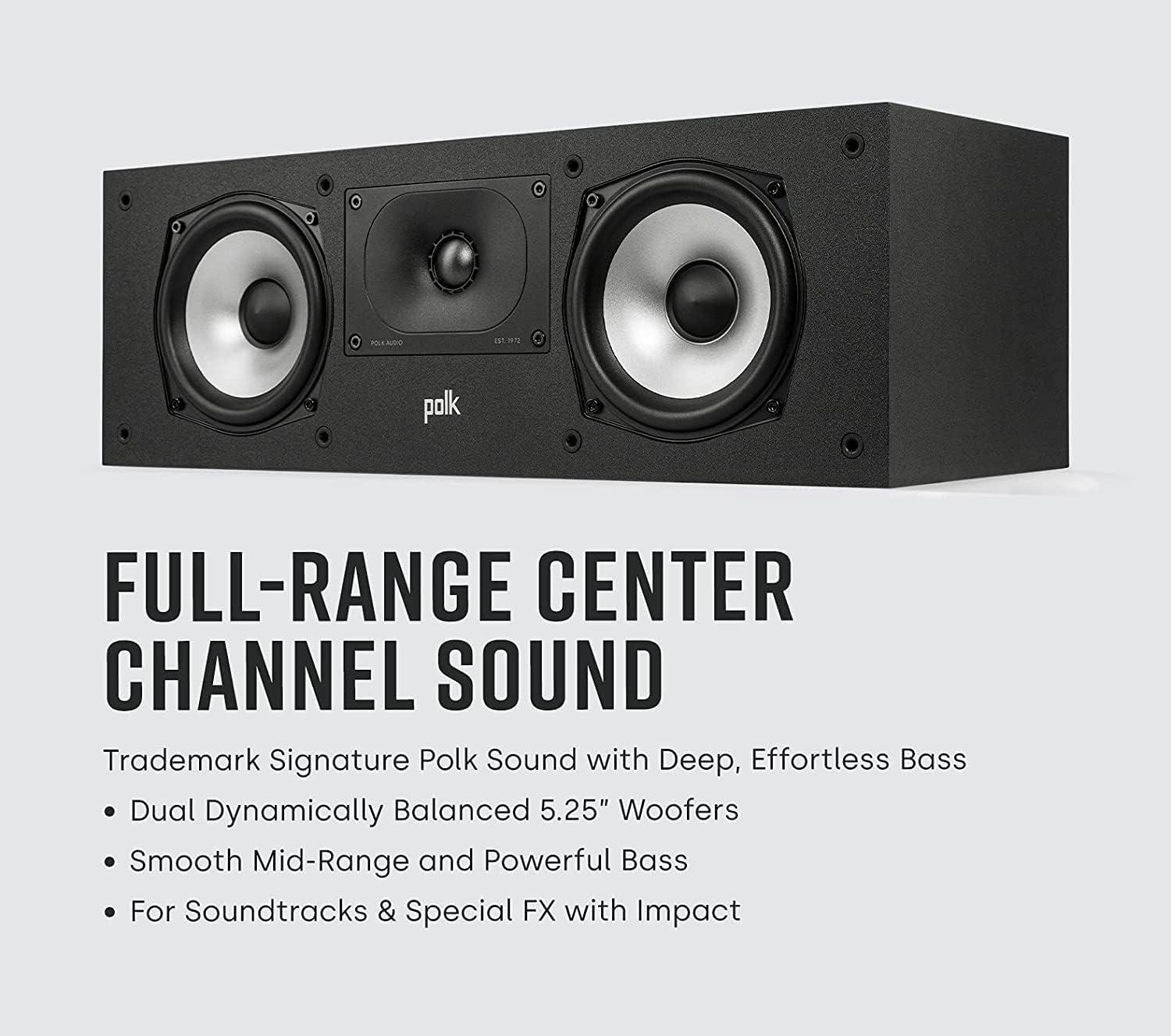 COMPACT CENTER CHANNEL SPEAKER – Enjoy focused, crystal-clear dialogues and dynamic, hi-res sound with Polk Monitor XT30 that features a 1″ Tweeter & (2) 5.25″ Dynamically Balanced Woofer for smooth mid-range and effortless bass in an immersive soundstage