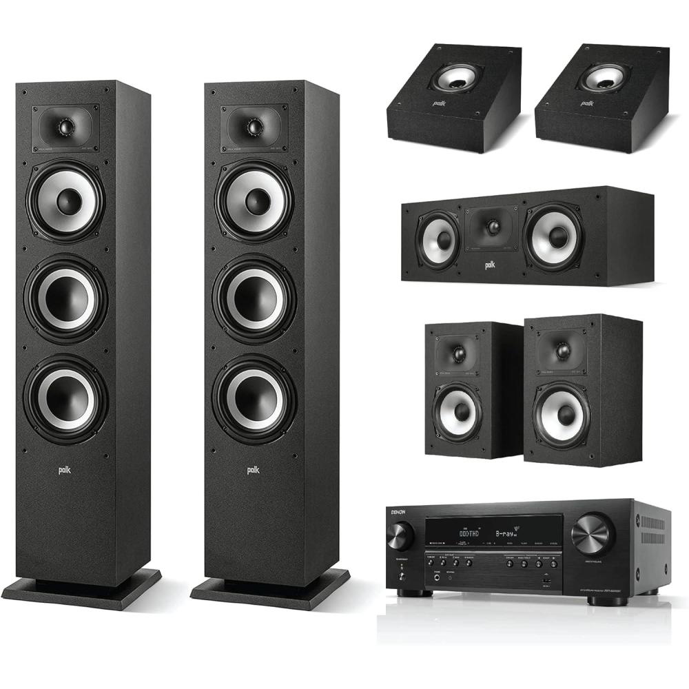 Polk Dolby Atmos Home Theater System Bundle with Denon AVR-S570BT(Black)