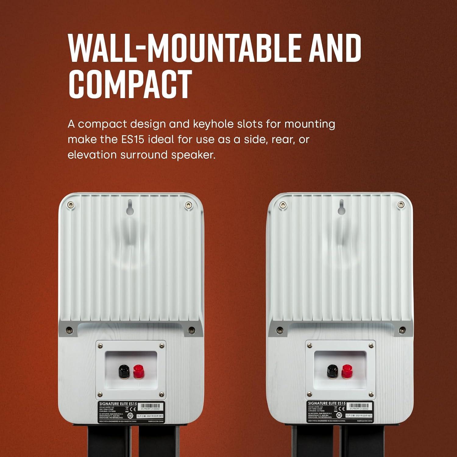 MAXIMUM PLACEMENT VERSITALITY – Use ES10 as side, rear or elevation surrounds for a true cinematic experience. Place it on a speaker stand (sold separately) or wall-mount it for customized directional firing using built-in screw inserts and keyhole slots